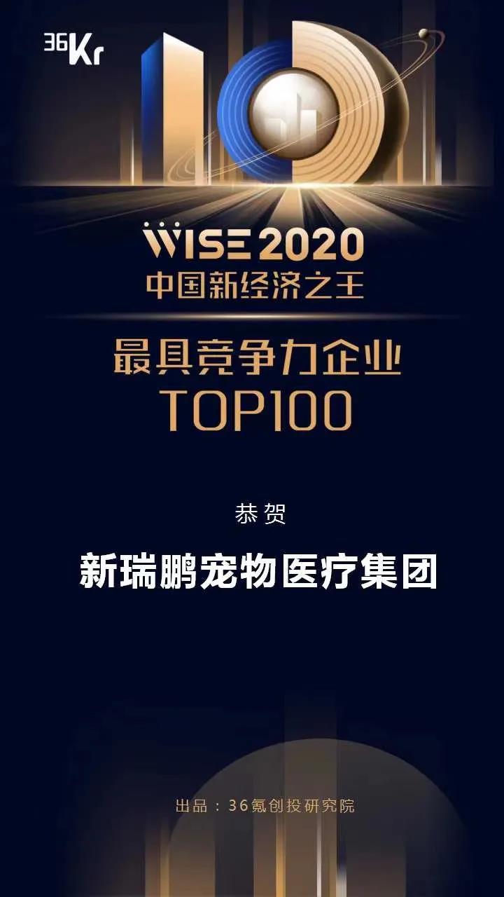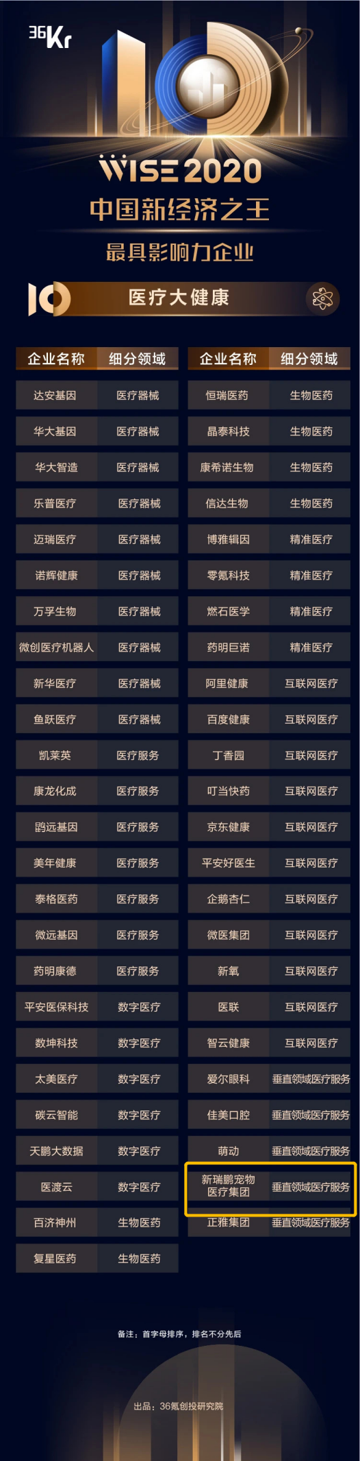 新瑞鹏宠物医疗集团董事长兼总裁彭永鹤先生入选中国新经济36位杰出贡献者。