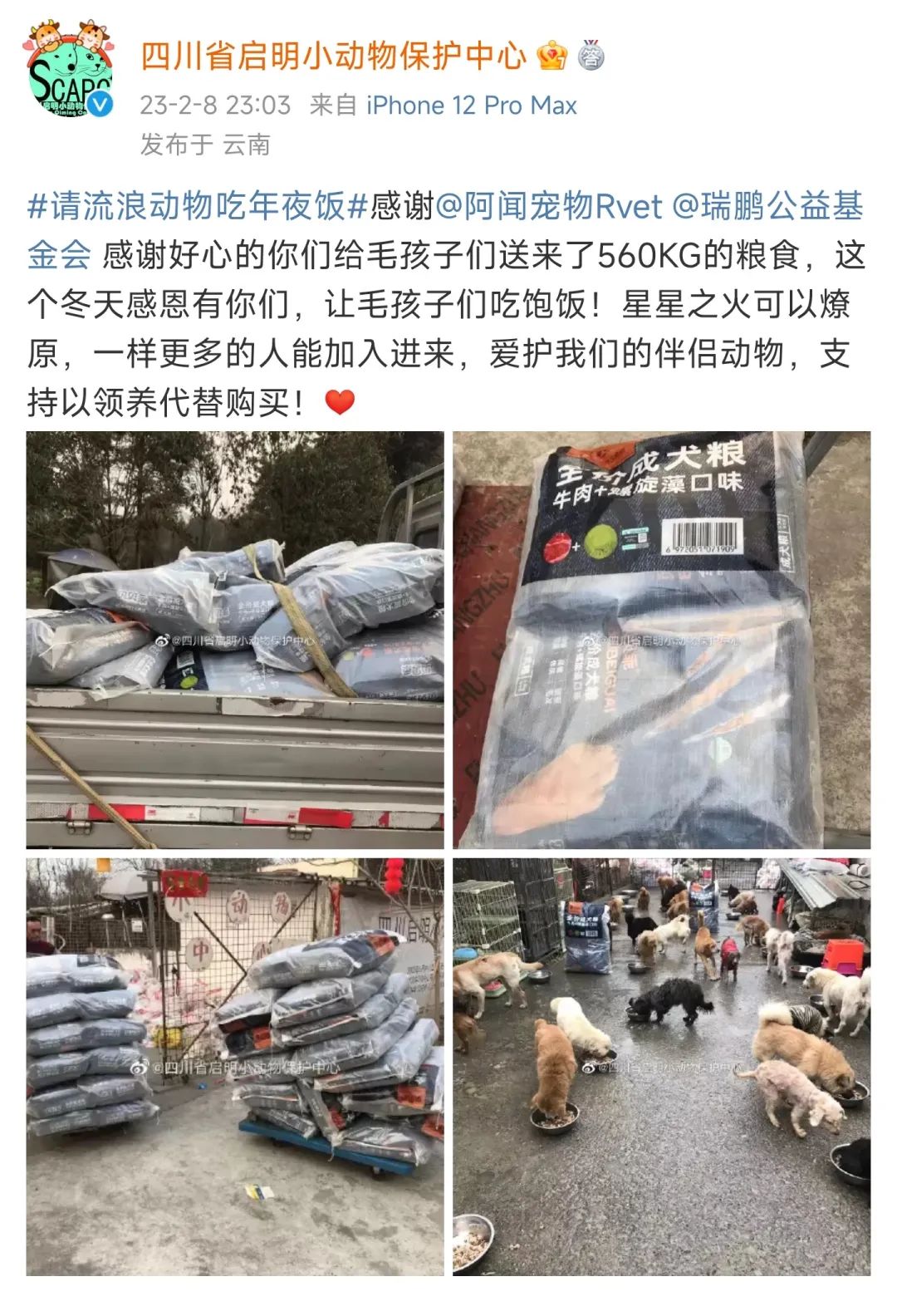 为了帮助TA们,去年12月阿闻宠物联合瑞鹏基金会再次开启请流浪动物吃年夜饭公益活动,