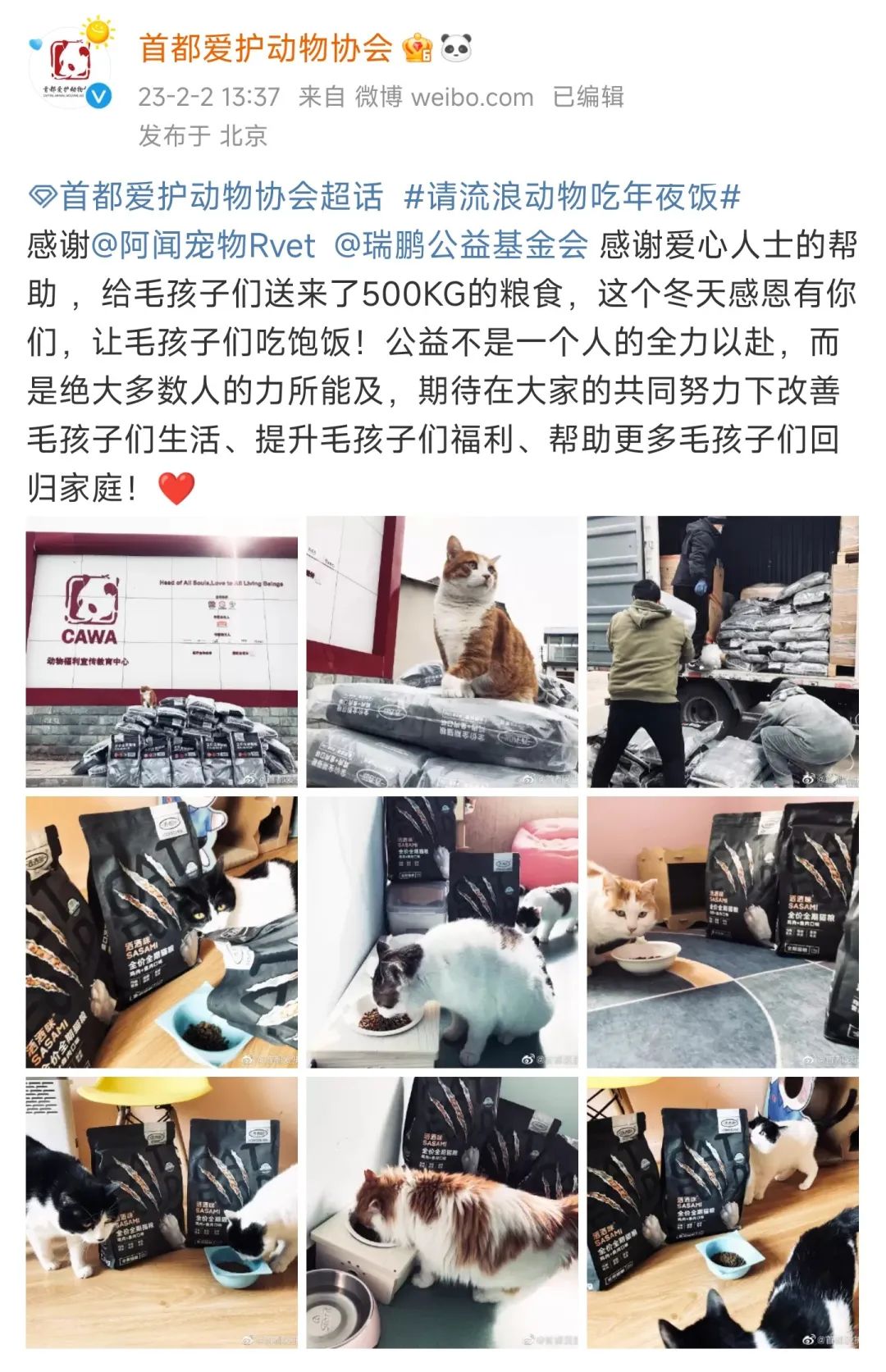 目前,这3062kg宠粮,已经全部送达了!
